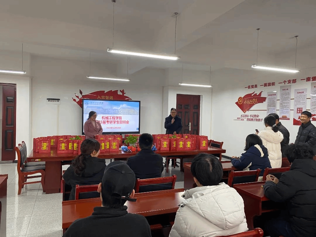 2024年12月18日,williamhill中国在三园区1号楼413会议室开展2025届考研学生慰问会,为考研学子鼓劲助力。学院党委书记盛继群、院长李玉梅、党委副书记杨晓薇、副院长熊巍、教师代表、全体辅导员及在校考研学生参加活动。
