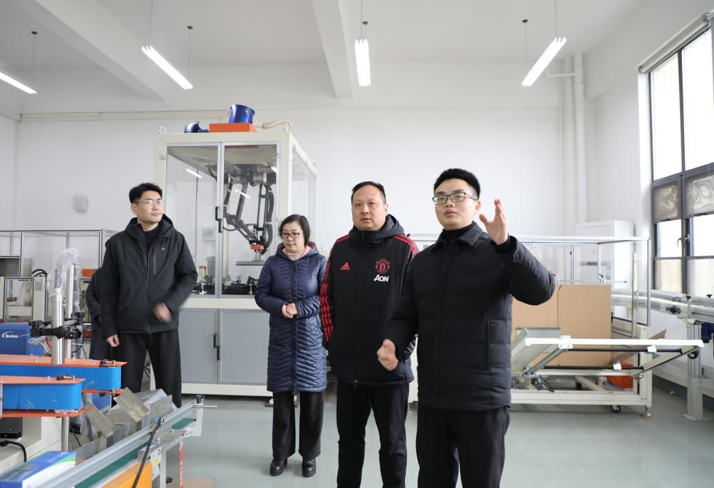 付宏校长先后参观了智能制造加工生产线、数字孪生智能制造工程实训平台、现代纸卫品制造关键技术湖北省工程研究中心以及传感器设计与造纸装备监测技术研究中心。参观过程中,付宏校长认真听取现场讲解,详细询问了平台运行、科研进展及成果转化情况,对学院在实验实训条件建设与特色研究方向取得的成效给予关注。