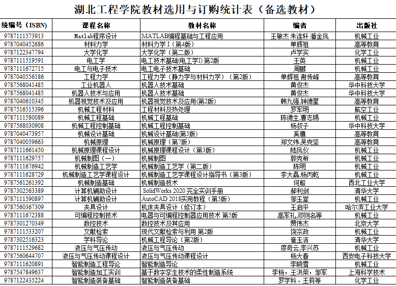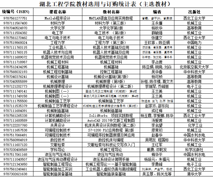 按照新修订的教材管理文件《威廉williamhill教材建设与管理办法》(湖工党字[2022]39 号)的文件精神。经williamhill中国教材工作领导小组召开学院2025年秋季教材选用审核会议初审,并审核通过,同意公示教材选用计划,报请学校教材建设与管理领导小组审核。现对以下我院专业课教材征订信息,予以公示。